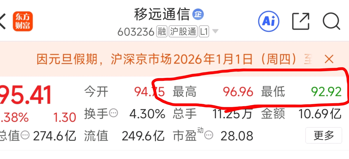 $移远通信(SH603236)$ 这庄也是挺搞笑的,最高9696最低9292