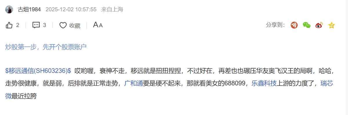 $移远通信(SH603236)$ 古老师,为什么你口中很差的华友把移远通信踩在脚下了啊,你不会炒股就棍吧,10月份叫你买,你天天骂我,怎么样啊,拿着不动都30%了,做做t更高啊,可惜了,你只会嘴硬