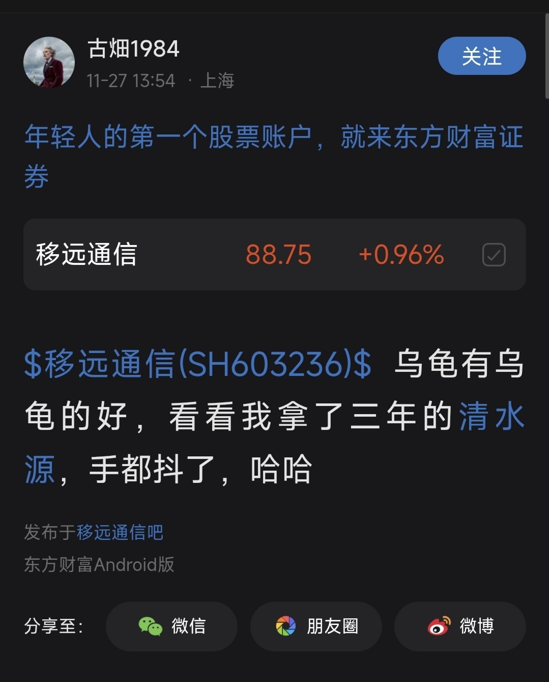 温馨提示: 1.根据《证券法》规定,禁止编造、传播虚假信息或者误导性信息,扰乱证券市场;2.用户在本社区发表的所有资料、言论等仅代表个人观点,与本网站立场无关,不对您构成任何投资建议。用户应基于自己的独立判断,自行决定证券投资并承担相应风险。《东方财富社区管理规定》