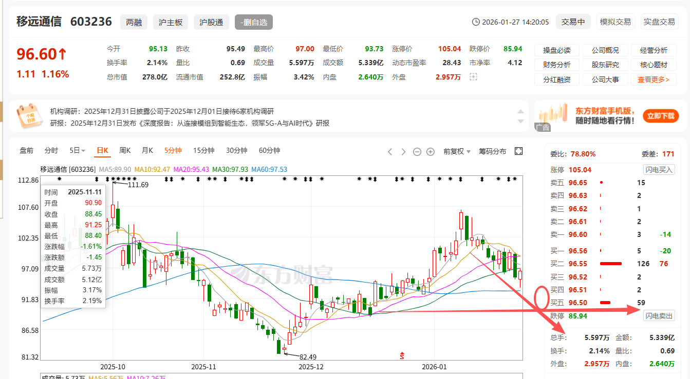 $移远通信(SH603236)$ 再憋一个大的,明天继续看跌