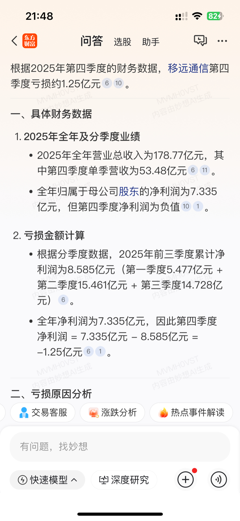$移远通信(SH603236)$ 大家不要等了,4季度亏了1.25亿星期一逃吧