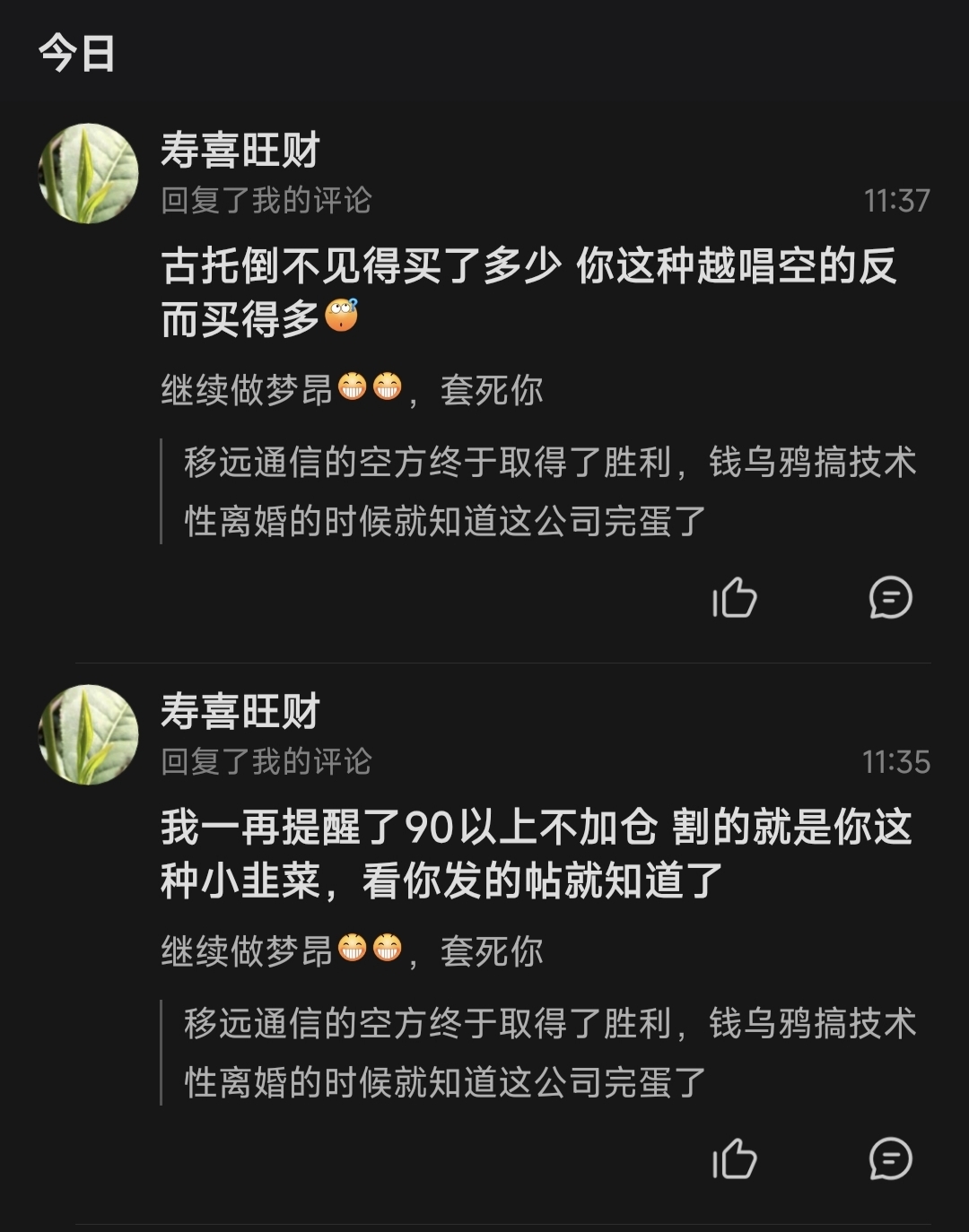 温馨提示: 1.根据《证券法》规定,禁止编造、传播虚假信息或者误导性信息,扰乱证券市场;2.用户在本社区发表的所有资料、言论等仅代表个人观点,与本网站立场无关,不对您构成任何投资建议。用户应基于自己的独立判断,自行决定证券投资并承担相应风险。《东方财富社区管理规定》