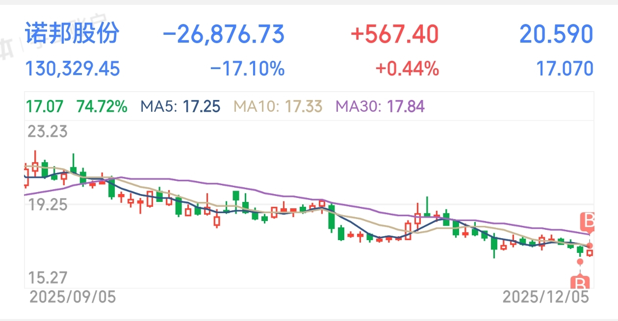 $诺邦股份(SH603238)$ 这垃圾走势我都看不上眼,持股几年了,知道到补仓位了……无奈买入,继续回本,本来-32%,补仓后-17.1%