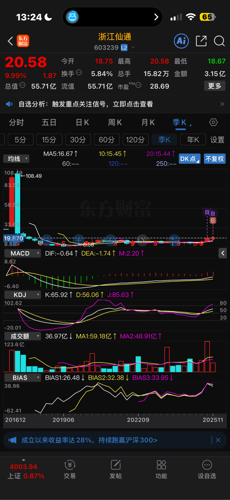 $浙江仙通(SH603239)$ 几乎没有套牢盘,翻个几倍都不成问题