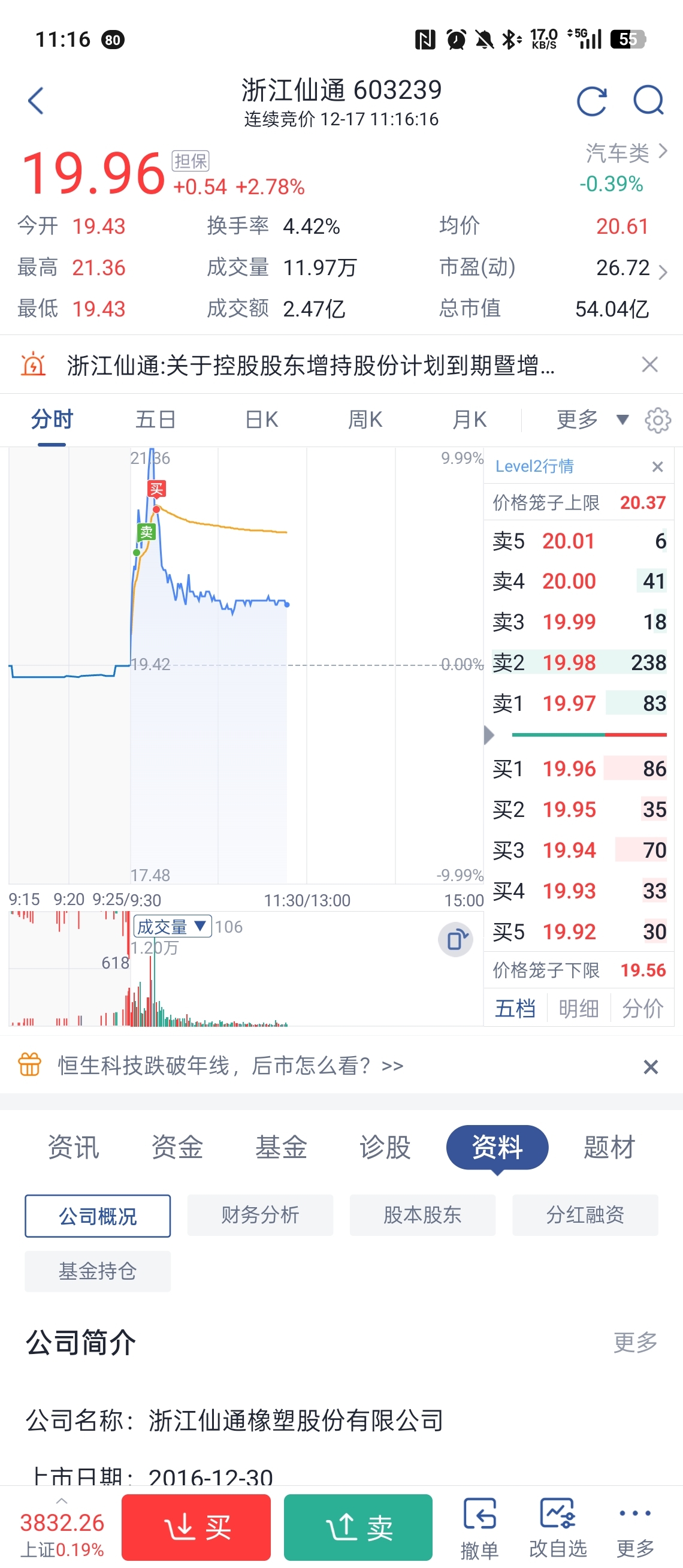 $浙江仙通(SH603239)$ 主力,没格局啊,大盘好亏,大盘坏也,追了又被套,哎,一言难尽