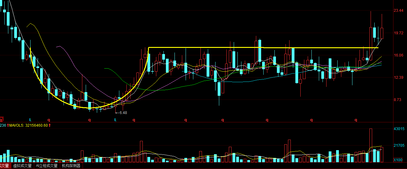 看看月线是不是非常漂亮,圆弧锅底 上长达5年的锅柄,9月份突破了锅柄,这三个10、11、12月份走出了早晨之星,是不是非常标准,大家都发表一下自己的看法。