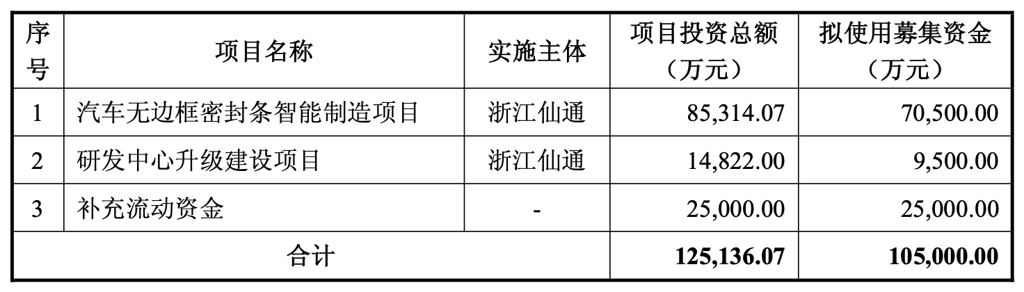 资料显示,浙江仙通主营业务为汽车密封条的研发、生产和销售。