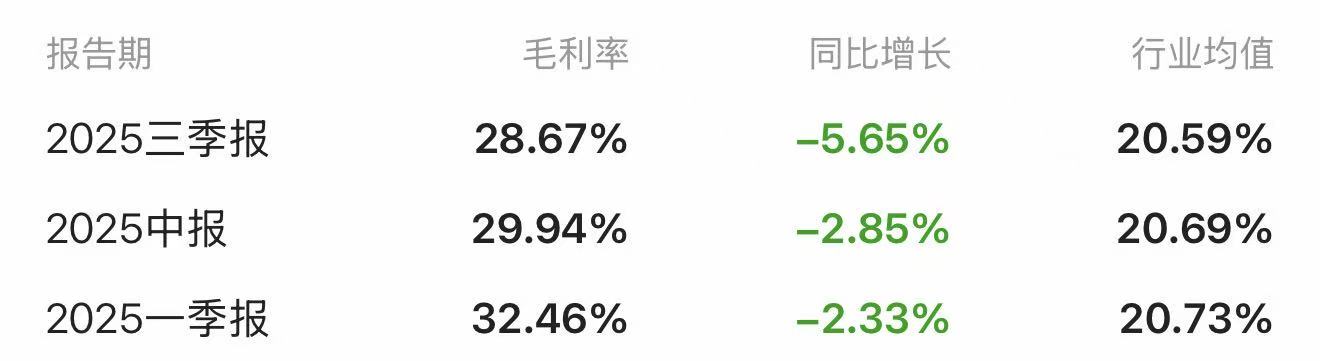 不过,公司业绩增长的同时,其毛利率已连续三个季度下滑,从2025年一季报的32.46%,逐渐下滑至2025年三季报的28.67%。