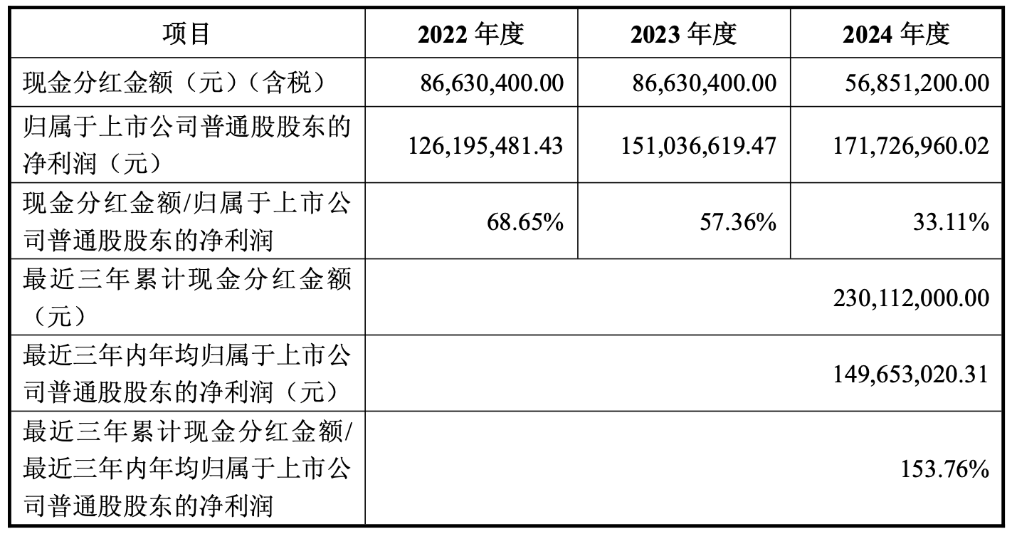 最近三年,浙江仙通累计现金分红金额为2.30亿元。