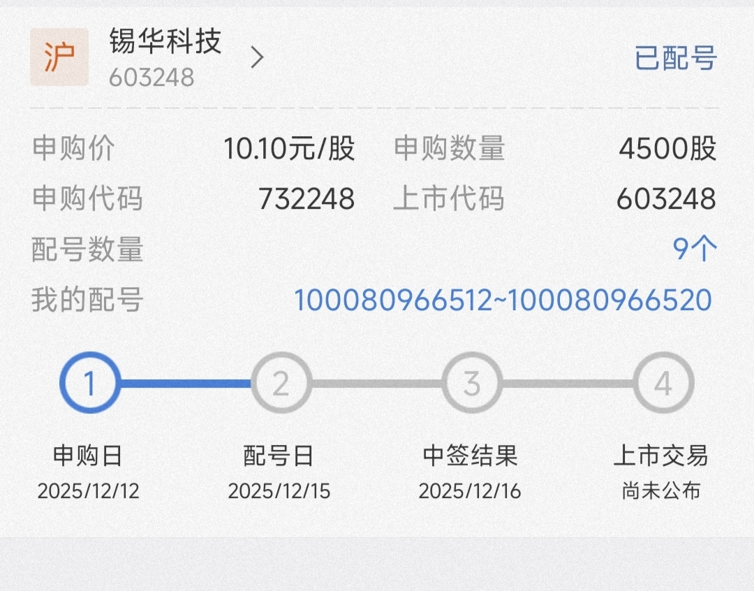 $锡华科技(SH603248)$ 大佬们有没有机会啊,想中一个