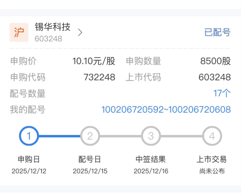 $锡华科技(SH603248)$ 看看中签了吗