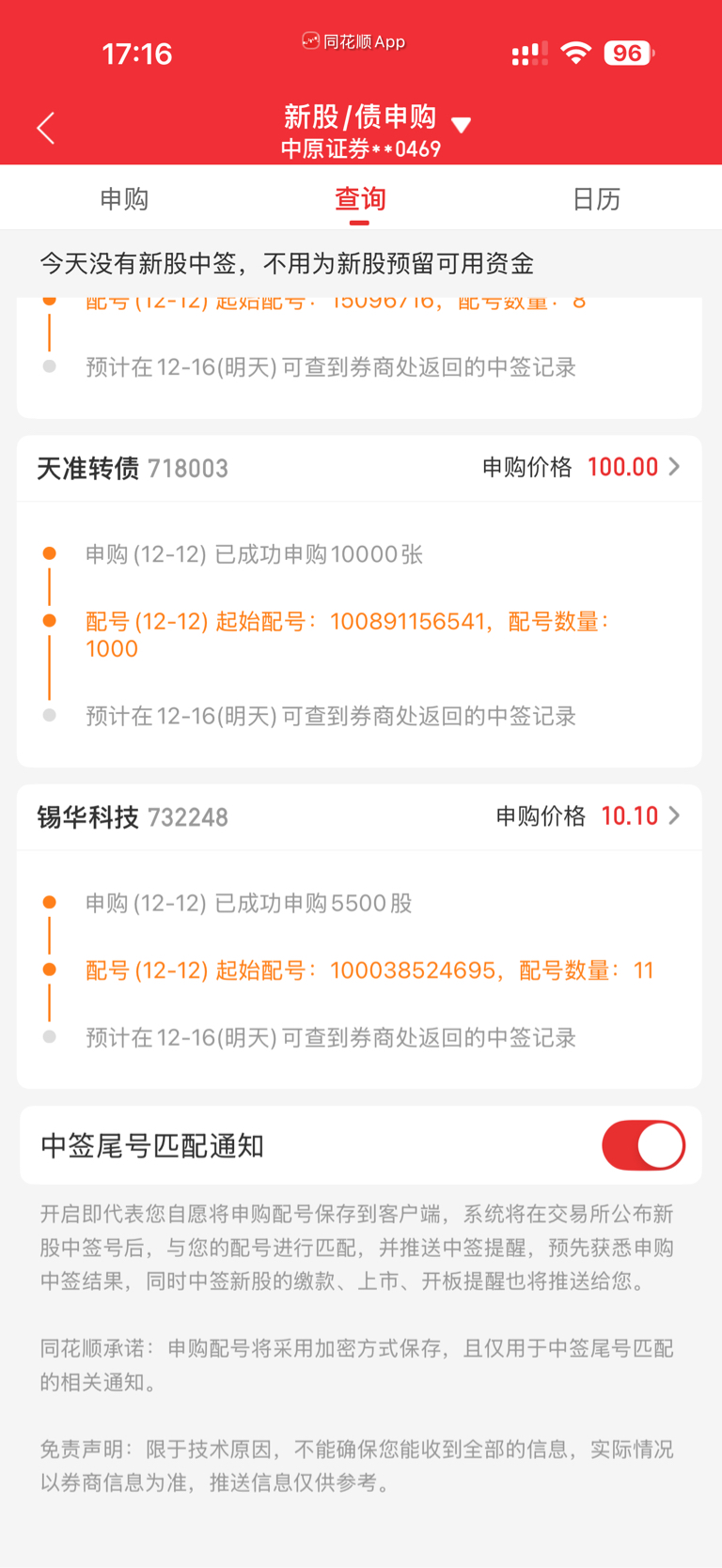 $锡华科技(SH603248)$ 你们中签号多少呀 我都没提示意思没中咯4695+11