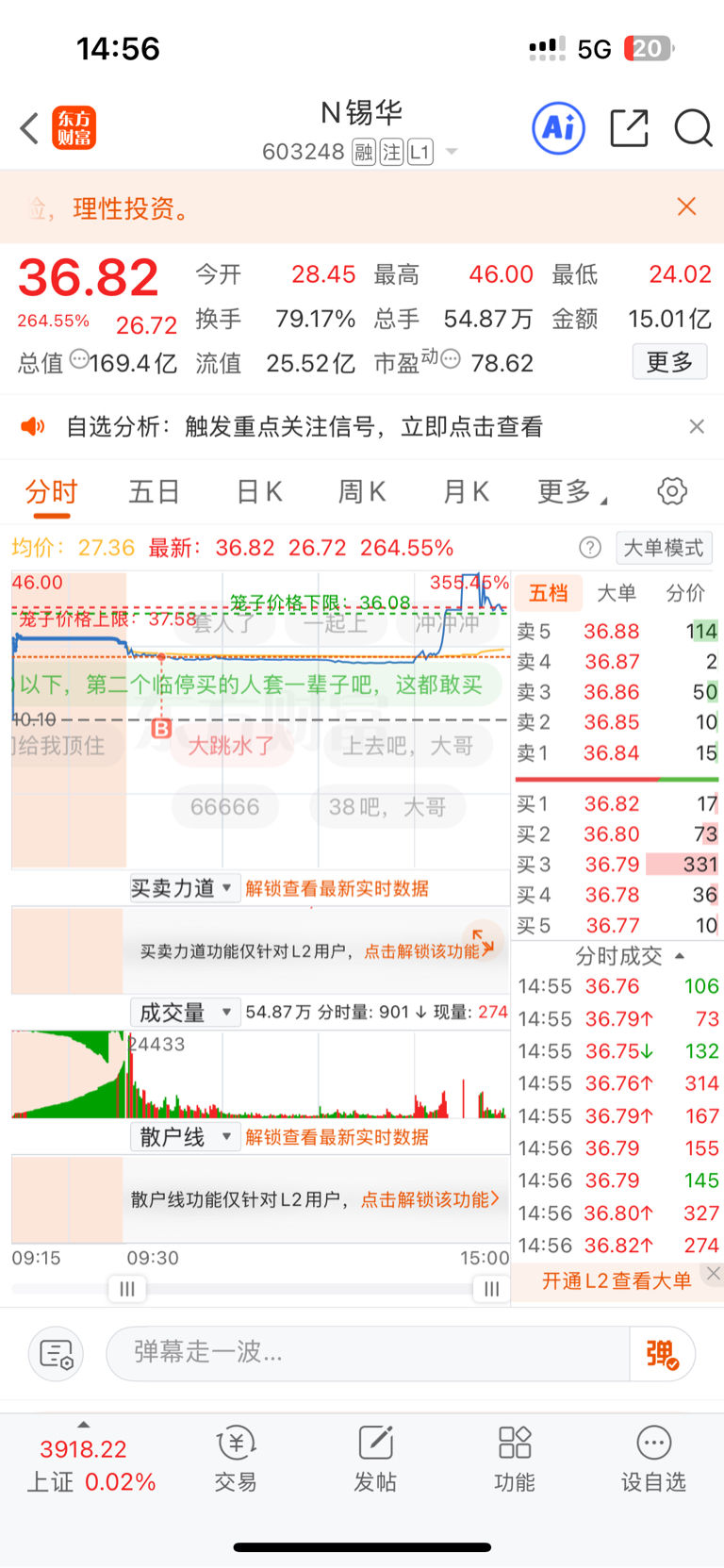 $N锡华(SH603248)$ 兄弟们 我明天能出来不?