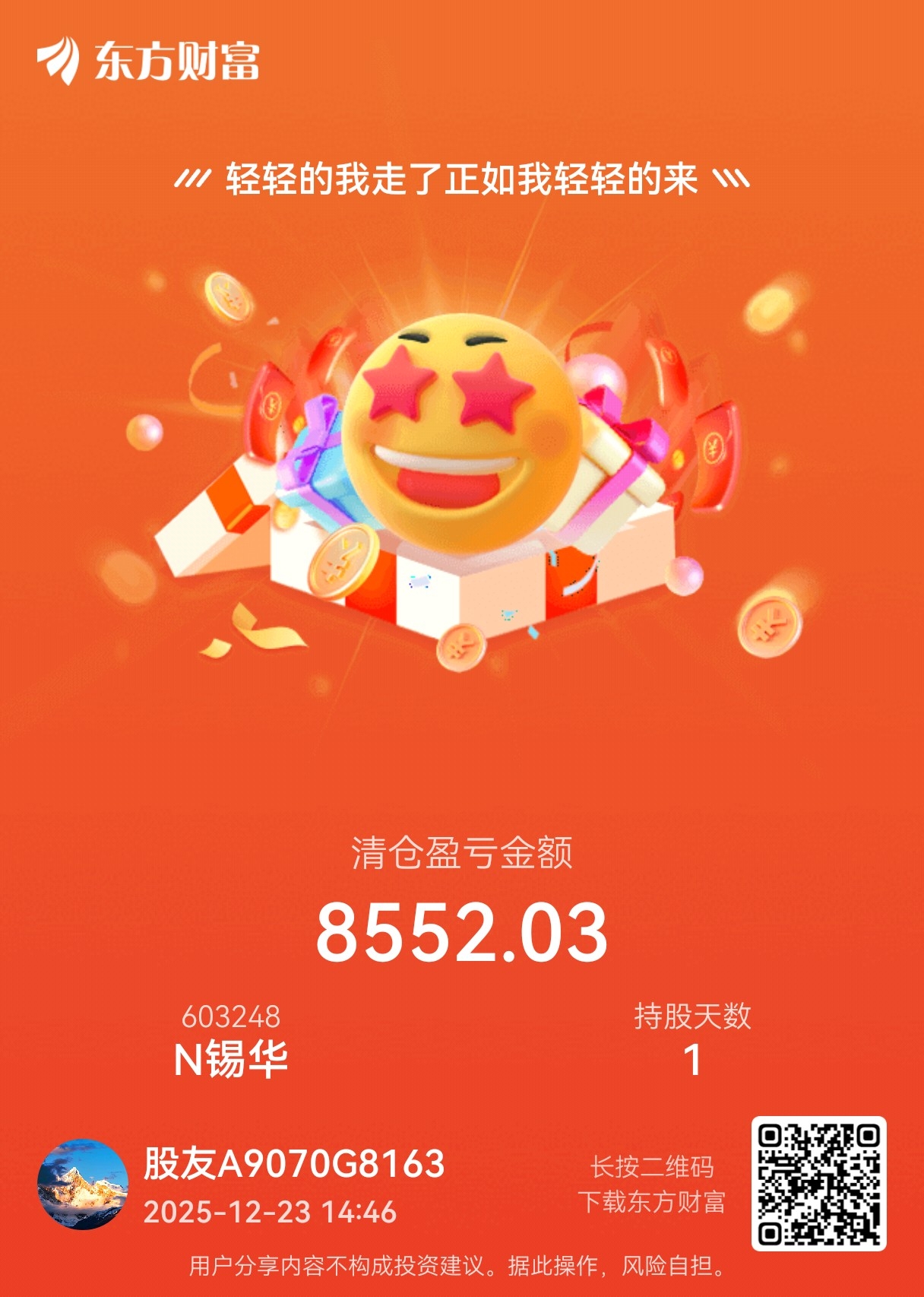 $N锡华(SH603248)$ 提前出了点,没有卖在最高位,但也知足了