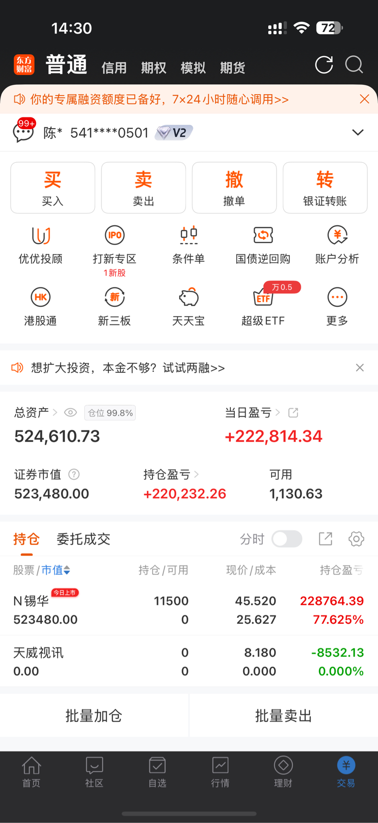 $N锡华(SH603248)$ 最高峰的时候截个图