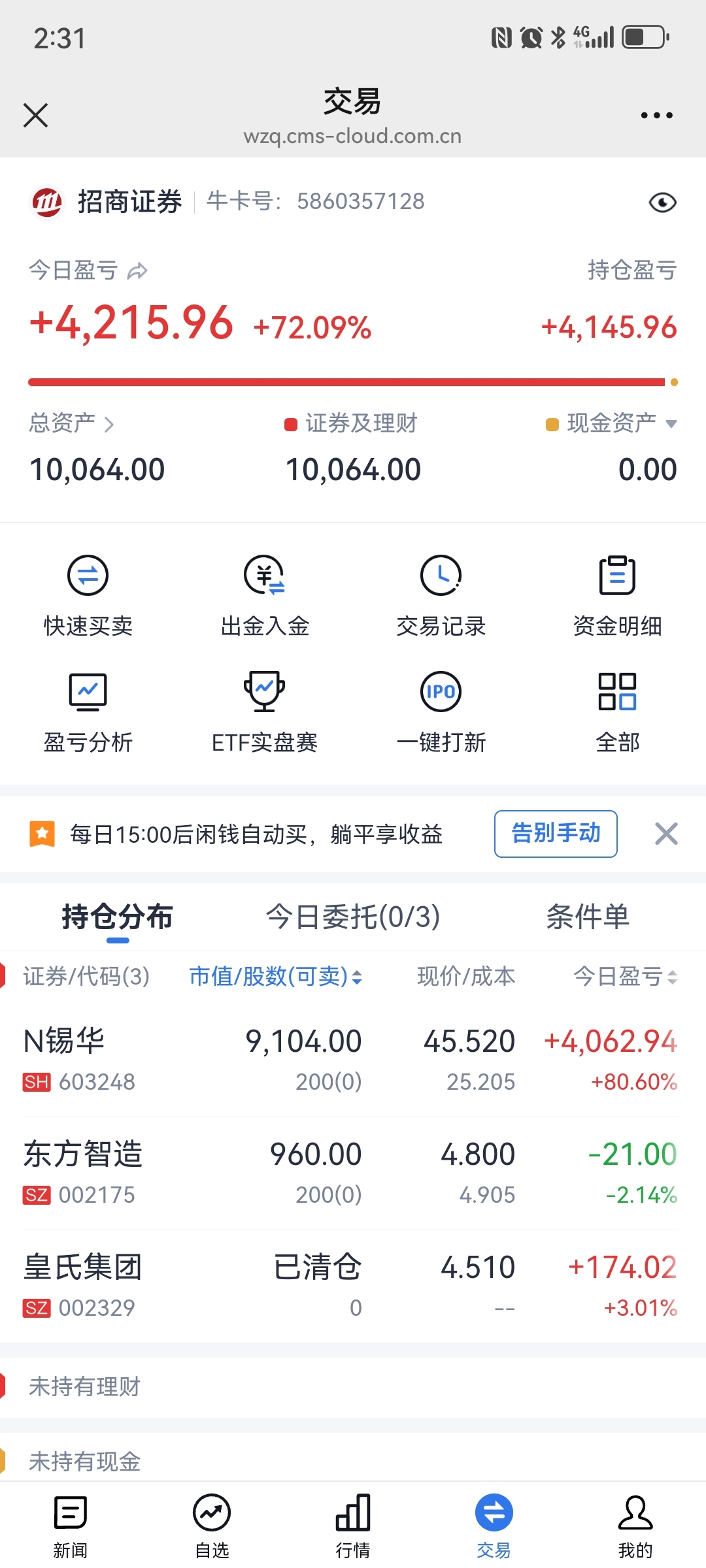 $N锡华(SH603248)$ 截了个图,留个纪念,三中富贵