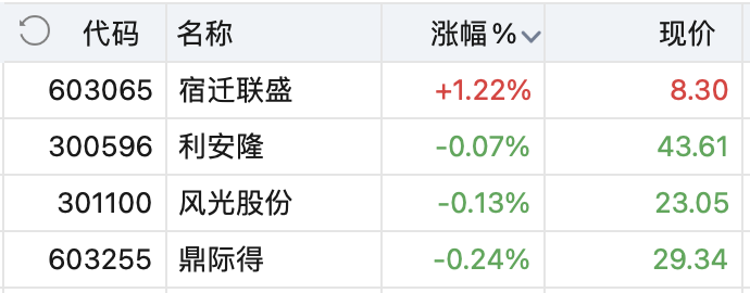 不过二级市场反应较为平淡,截至14:20,除宿迁联盛涨1.22%,利安隆、风光股份、鼎际得均出现小幅下跌。