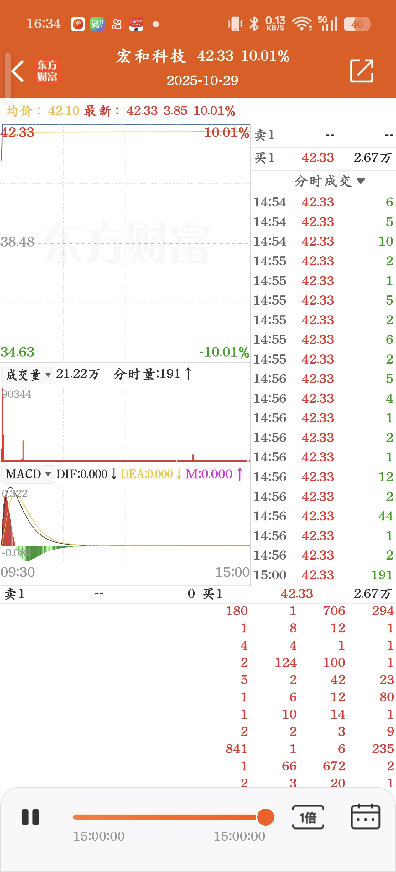 $宏和科技(SH603256)$ 昨天涨停尾盘,就成交了191手,今天绿9个点,尾盘成交5000多手,全天放量。家人们全天买进17万手,成功掩护主力出货。这就是股市