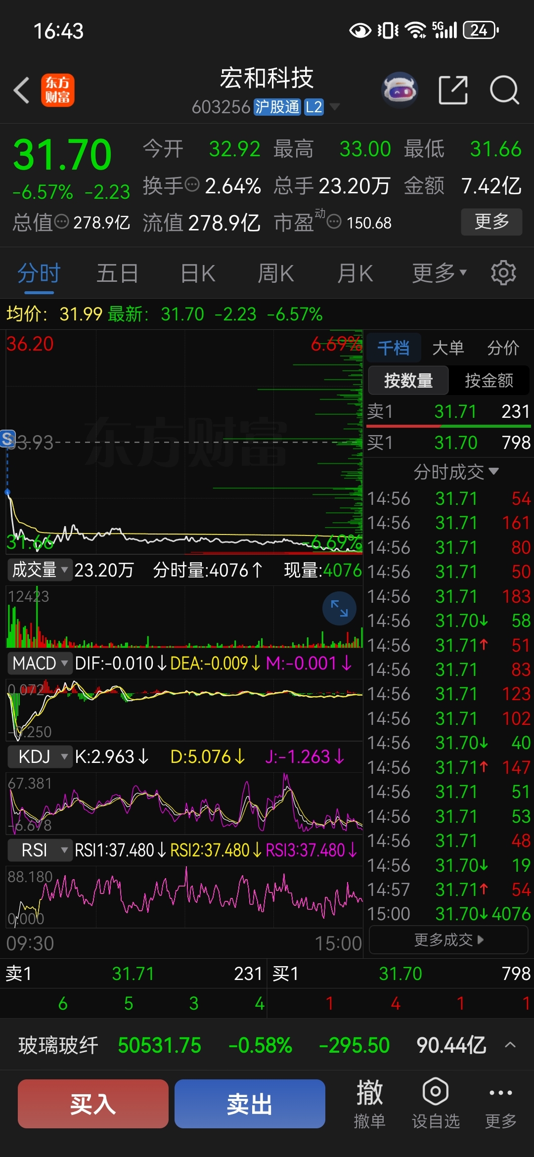 $宏和科技(SH603256)$ 昨天最低点进,今天最高点出,一来一回刚够手续费。