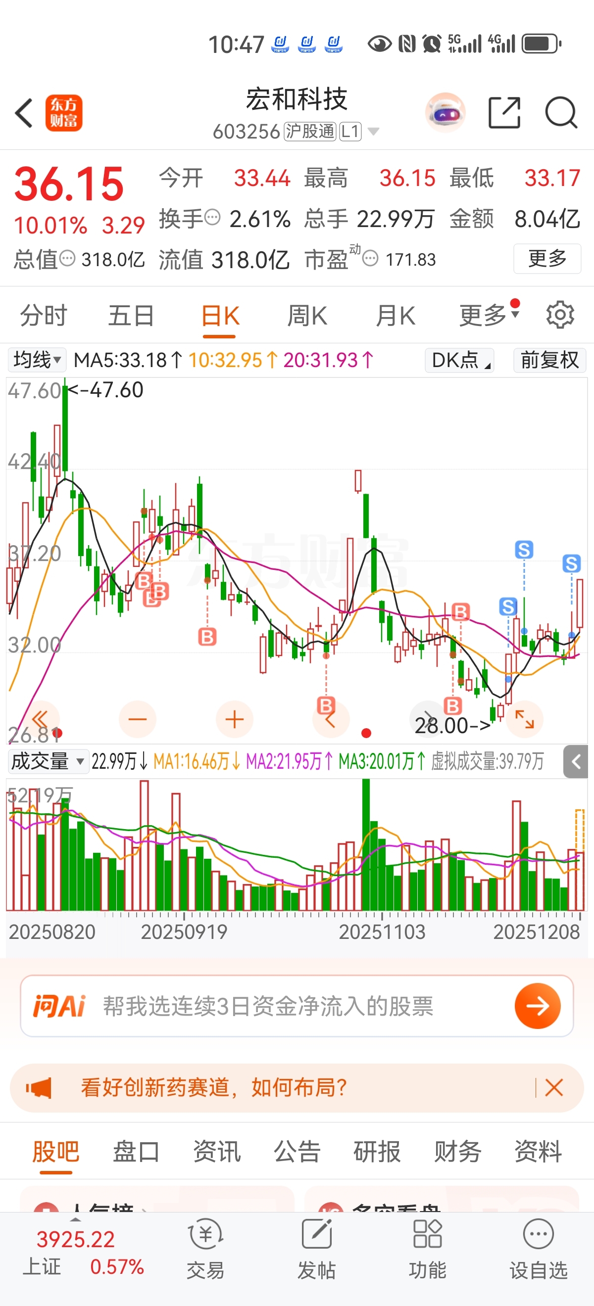 $宏和科技(SH603256)$ 这这这……赔了15个点