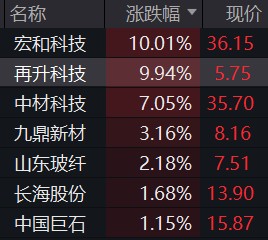 板块异动 | 玻璃纤维概念上涨 宏和科技、再升科技涨停