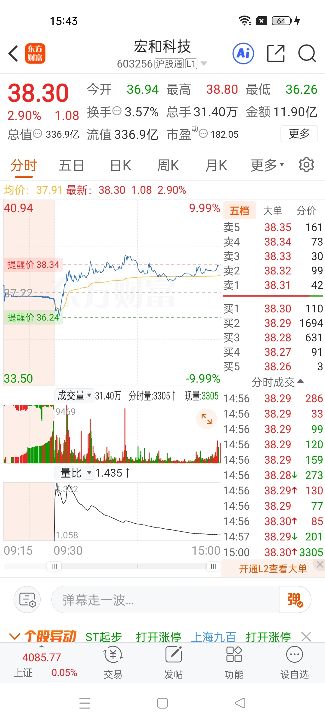 $宏和科技(SH603256)$ 低点极限支撑点,高点极限接近抛压收盘,现在控盘太很了