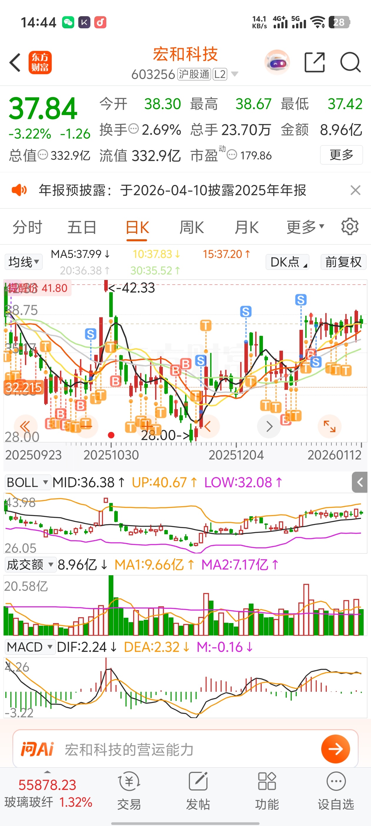 $宏和科技(SH603256)$ 都别卖,明天反弹再卖明天不要买,既然打压了应该会打压几天,过二天再接回来