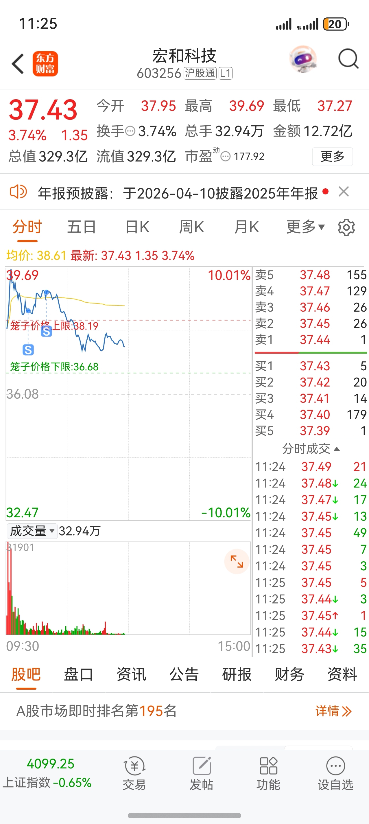 $宏和科技(SH603256)$ 就知道他要下来