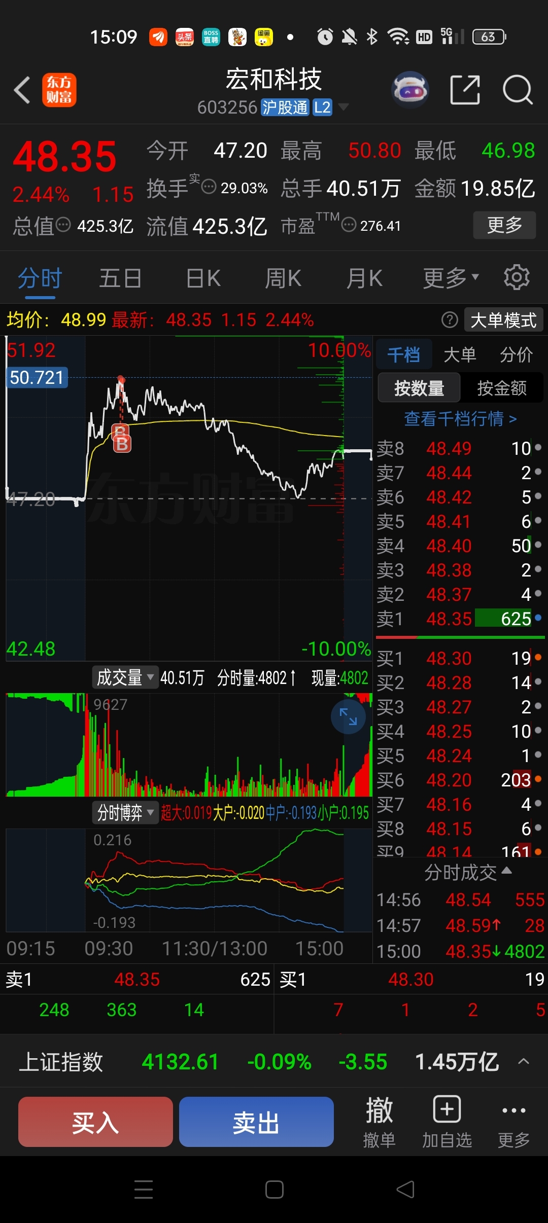 $宏和科技(SH603256)$ 被套住了,拿两个星期有机会盈利出局吗?