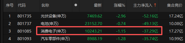 今天消费电子板块就主力直接跑了37亿元。