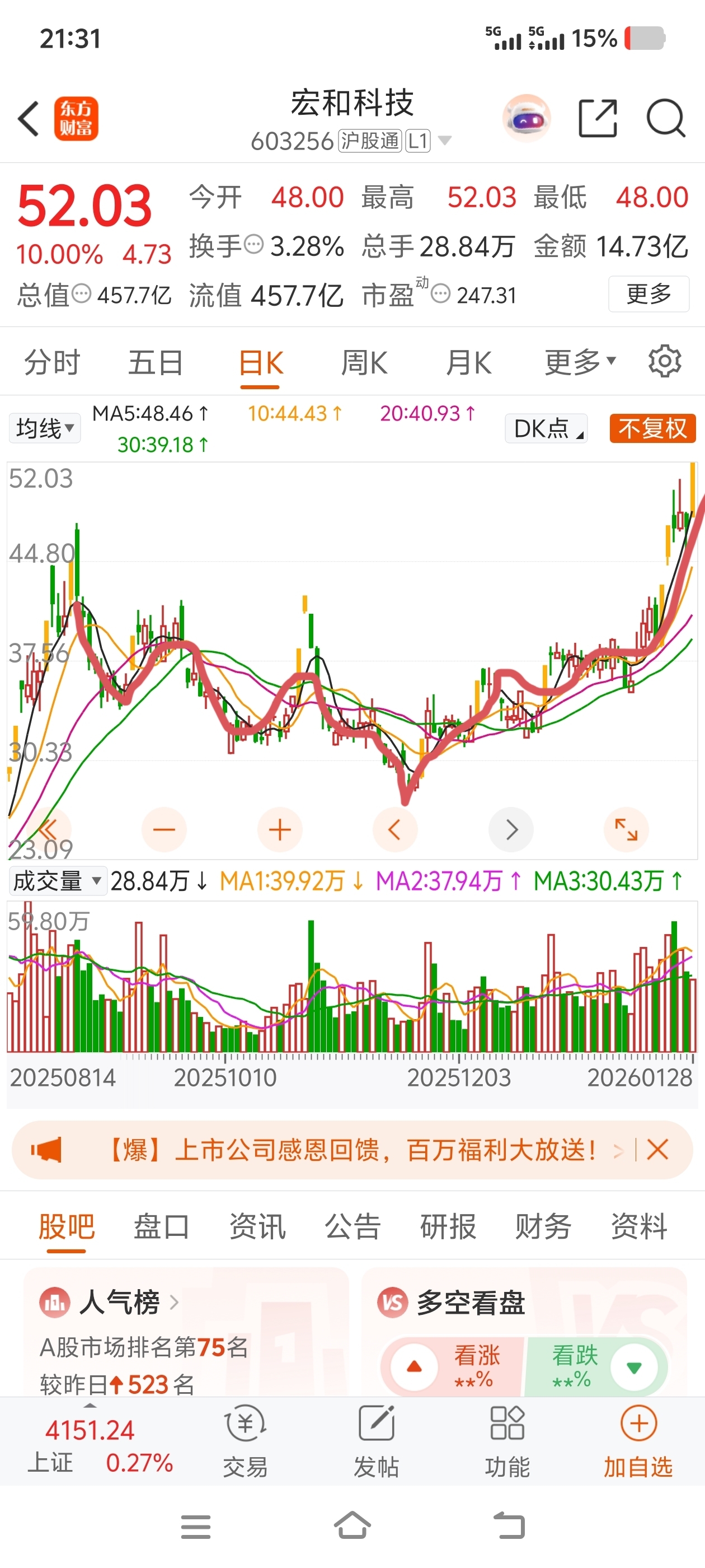 $宏和科技(SH603256)$ 主力是真有实力,大鹏展翅,大展宏图,展翅高飞。给机会我也来玩玩,好戏才刚开始