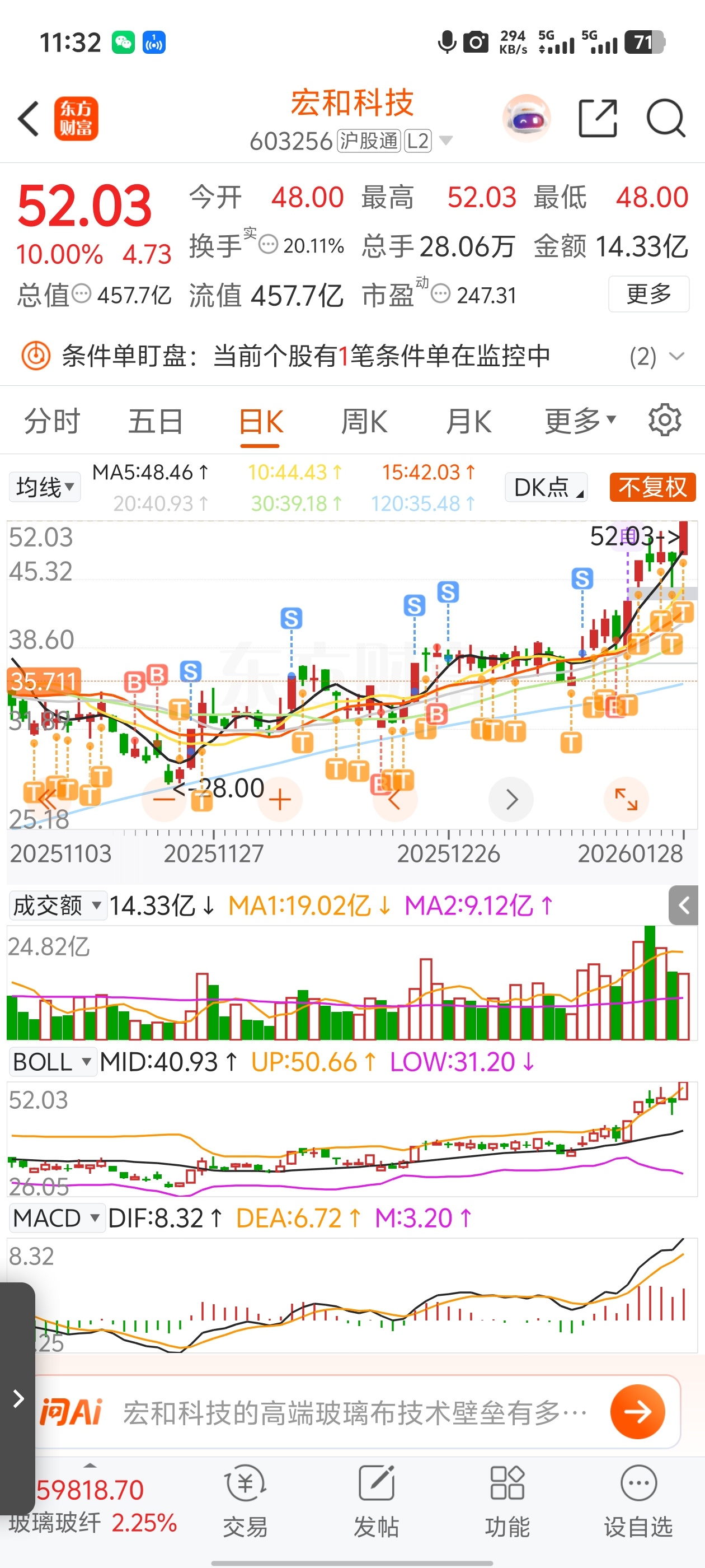 $宏和科技(SH603256)$ 快过年了,可以卖了,不拉回去就是墓碑线