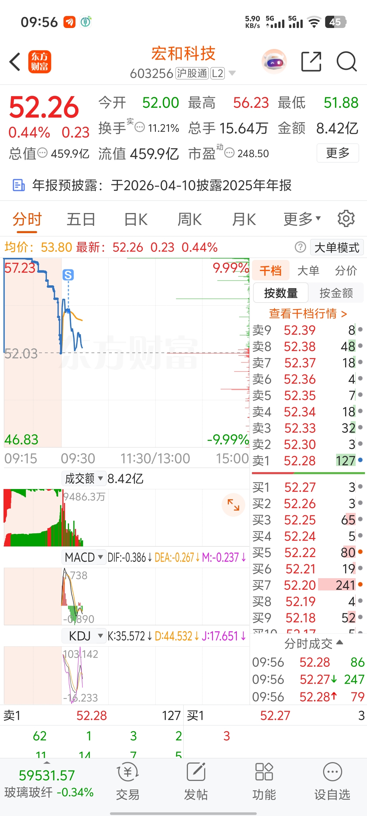 $宏和科技(SH603256)$ 其实今天应该跳空高开的,继续没有跳空那就是诱多,明天还是危险