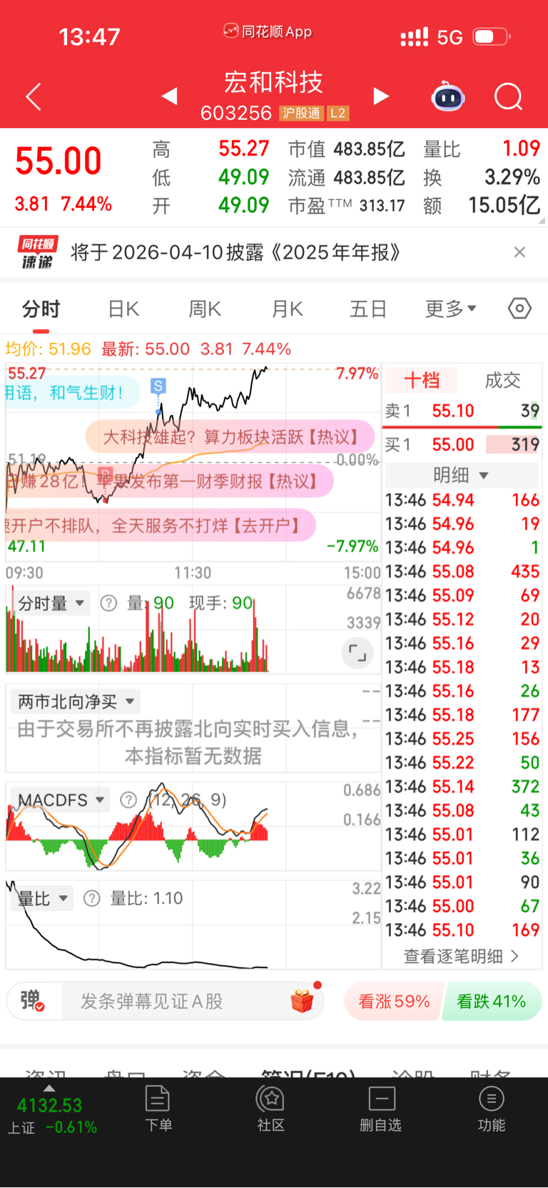 $宏和科技(SH603256)$ 给自己操作打90分 还有十分就是卖早了一批货
