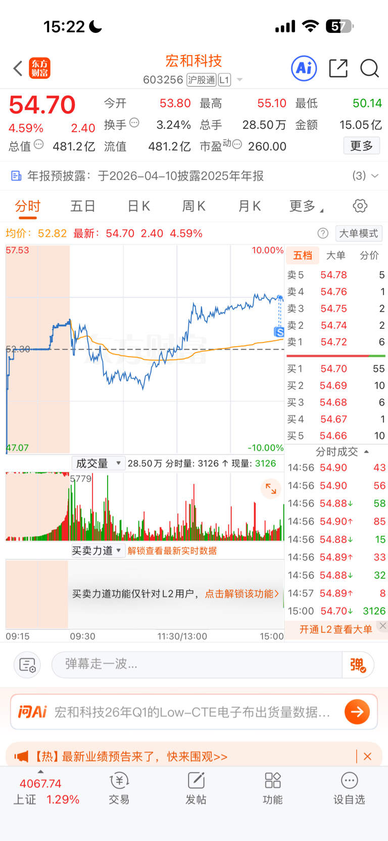 $宏和科技(SH603256)$ 尾盘清了一半,看看明天有没有机会接吧