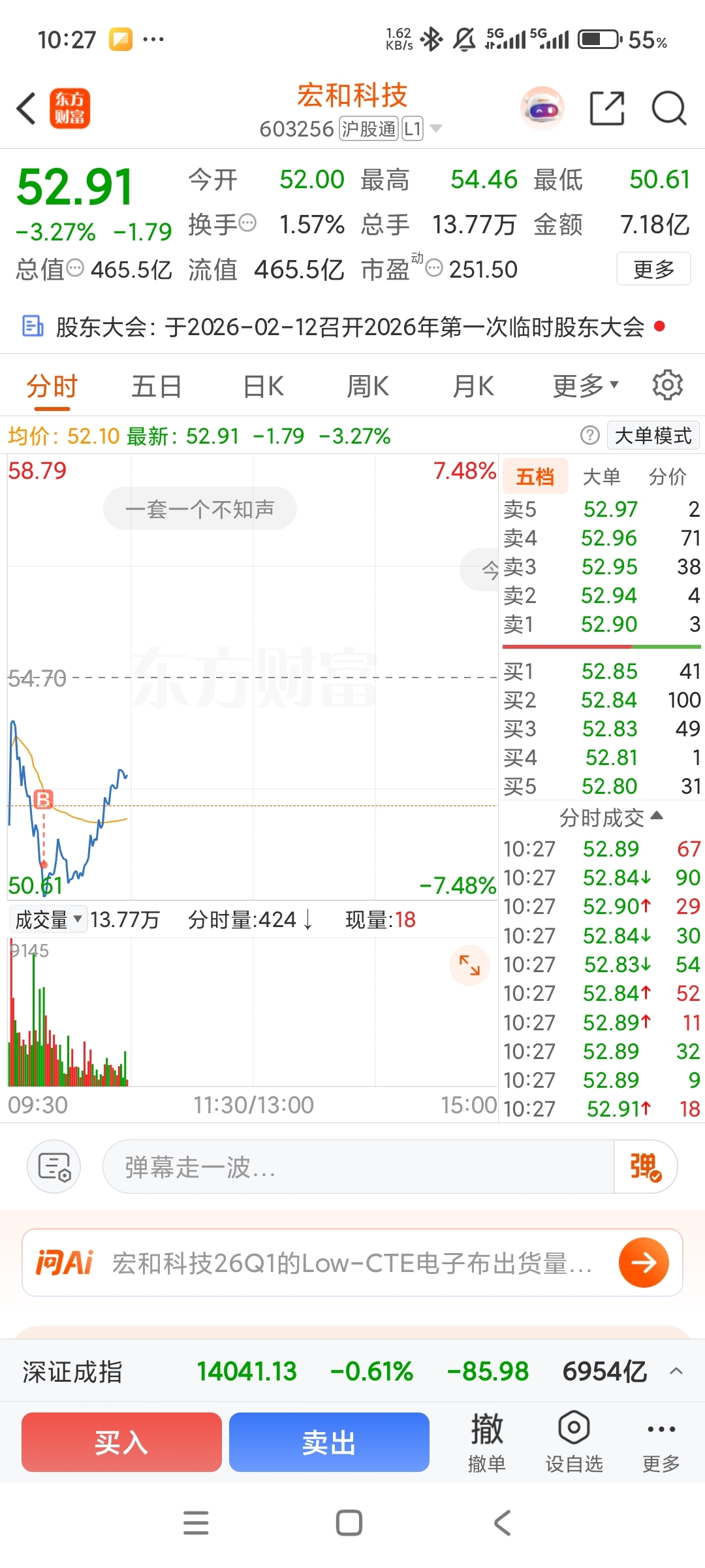 $宏和科技(SH603256)$ 可惜没有开盘跑,做t