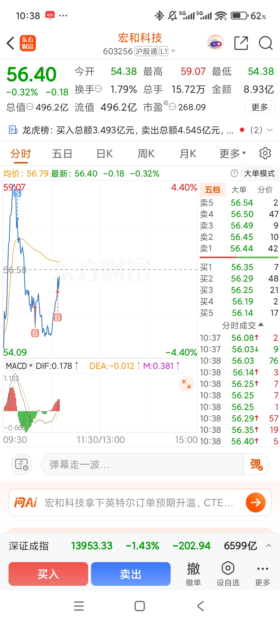 $宏和科技(SH603256)$ 可惜,没在-3%的时候买,不然这个t是真的爽了