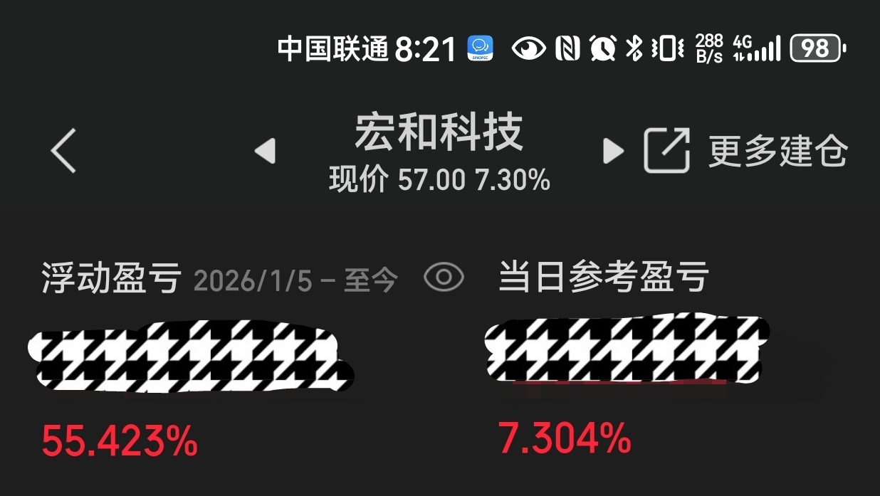 $宏和科技(SH603256)$ 赚55%,今天说再见!