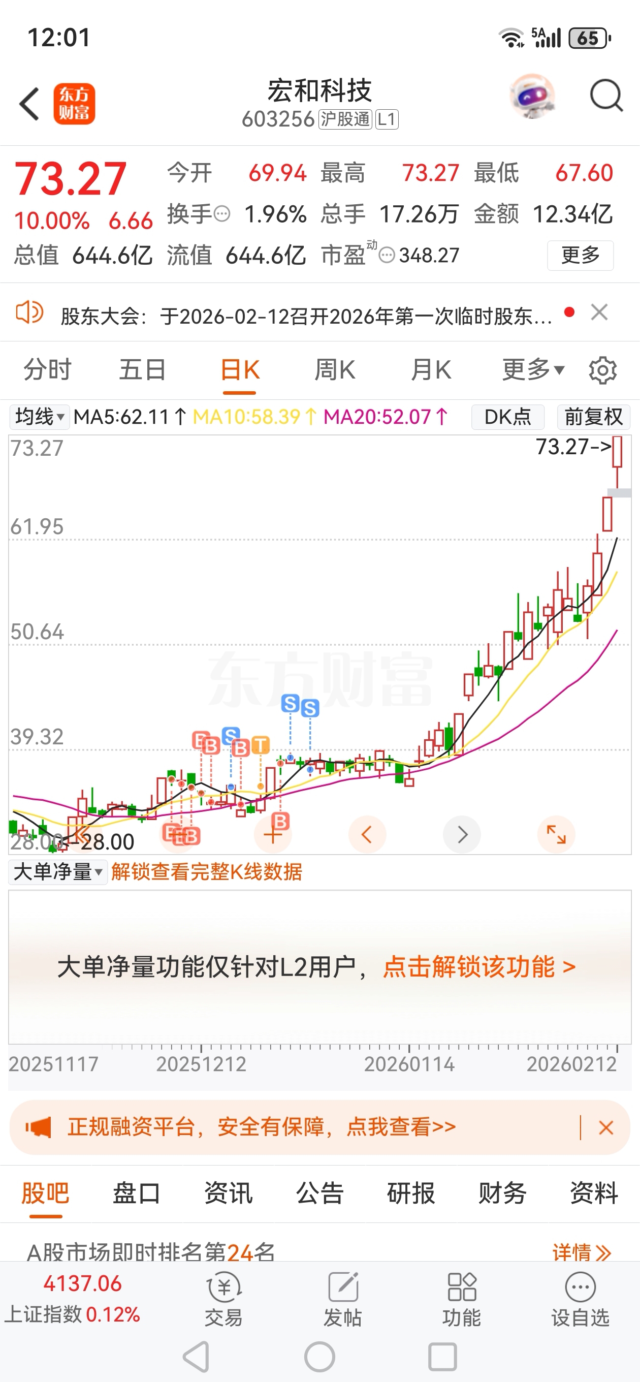 $宏和科技(SH603256)$ 错过了一个亿!卖后翻倍了!