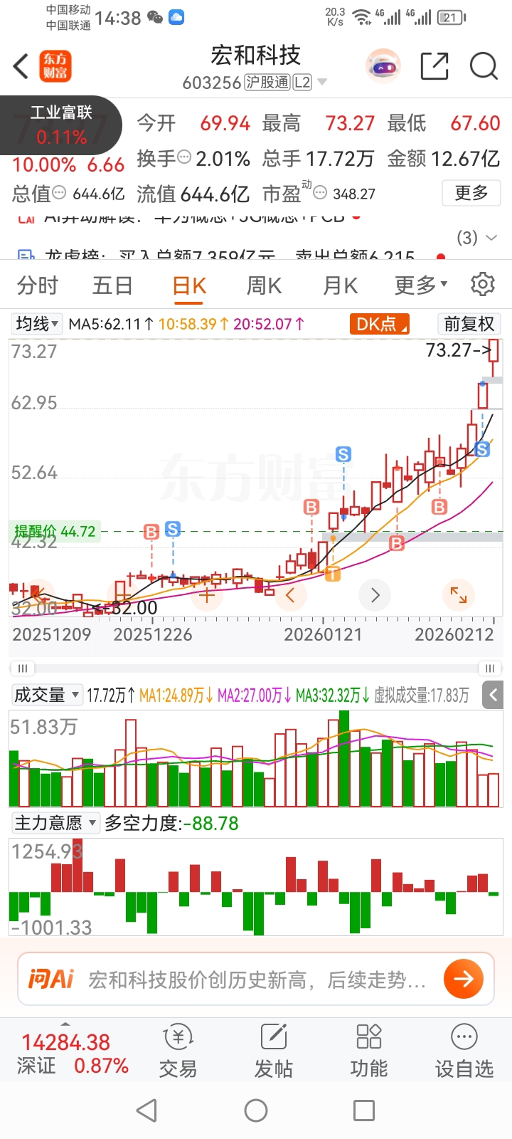 $宏和科技(SH603256)$ 一天瞅八遍根本拿不住