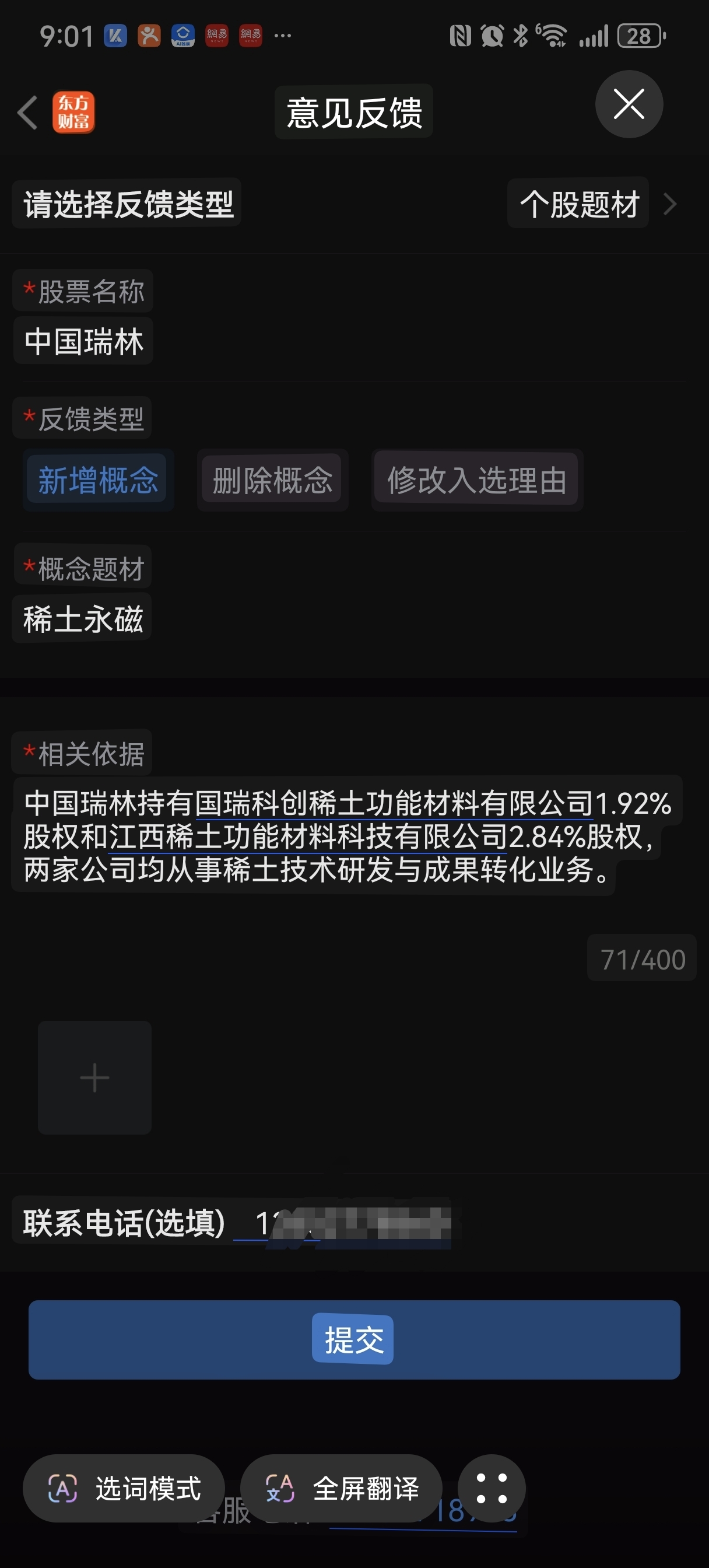$中国瑞林(SH603257)$ 中国瑞林怎么没有稀土永磁概念,赶紧申请加上