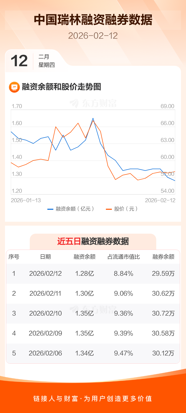 交易所最新数据显示,中国瑞林于2026年2月12日获融资买入507.31万元,融资偿还771.20万元,当日融资净偿还263.9万元。目前,该股融资余额1.28亿,占流通市值比例为8.84%。