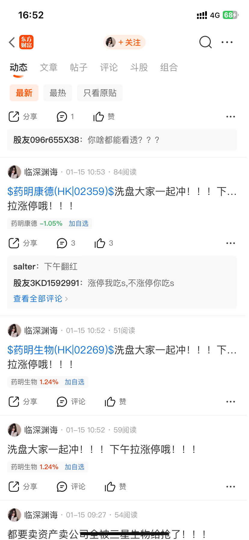 温馨提示: 1.根据《证券法》规定,禁止编造、传播虚假信息或者误导性信息,扰乱证券市场;2.用户在本社区发表的所有资料、言论等仅代表个人观点,与本网站立场无关,不对您构成任何投资建议。用户应基于自己的独立判断,自行决定证券投资并承担相应风险。《东方财富社区管理规定》