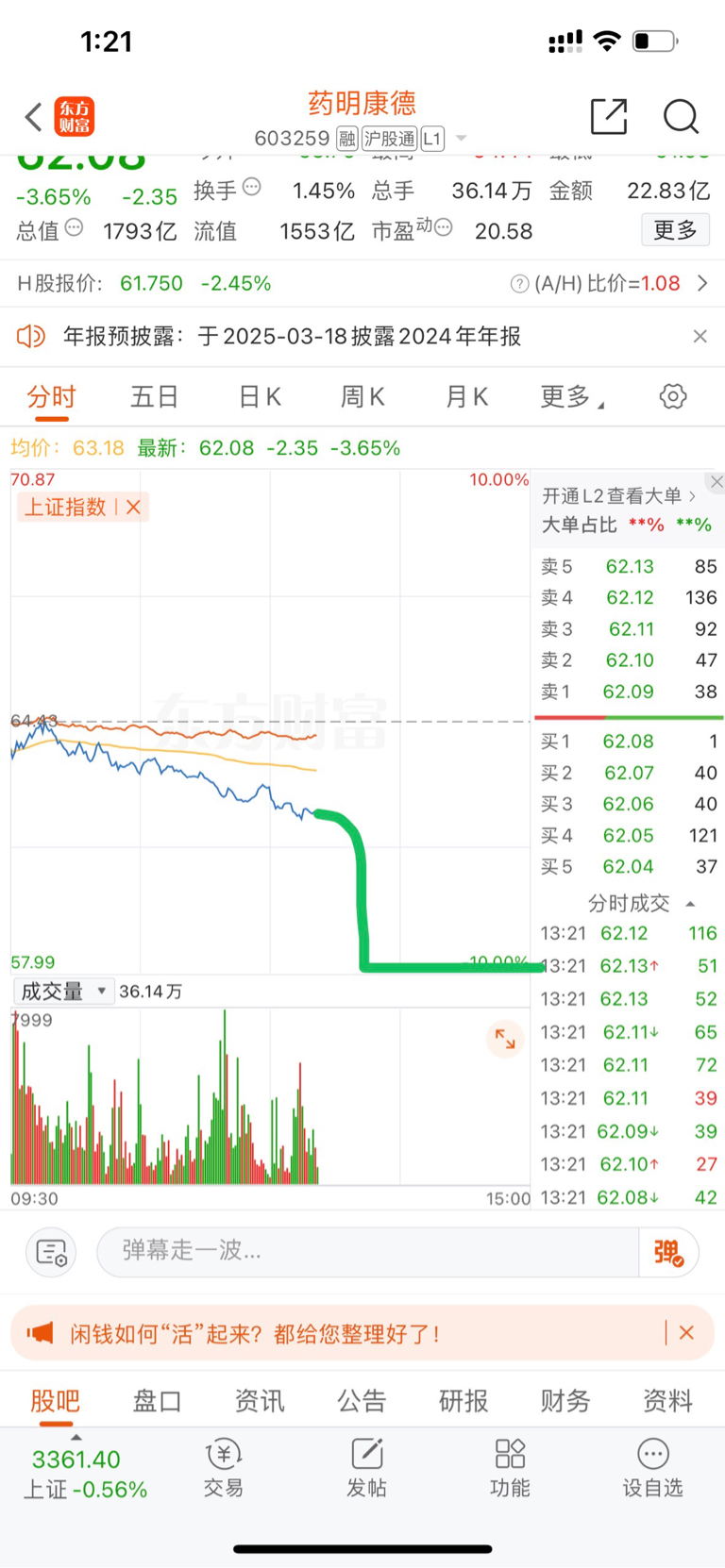 $药明康德(SH603259)$ 下午这么走,哈哈。