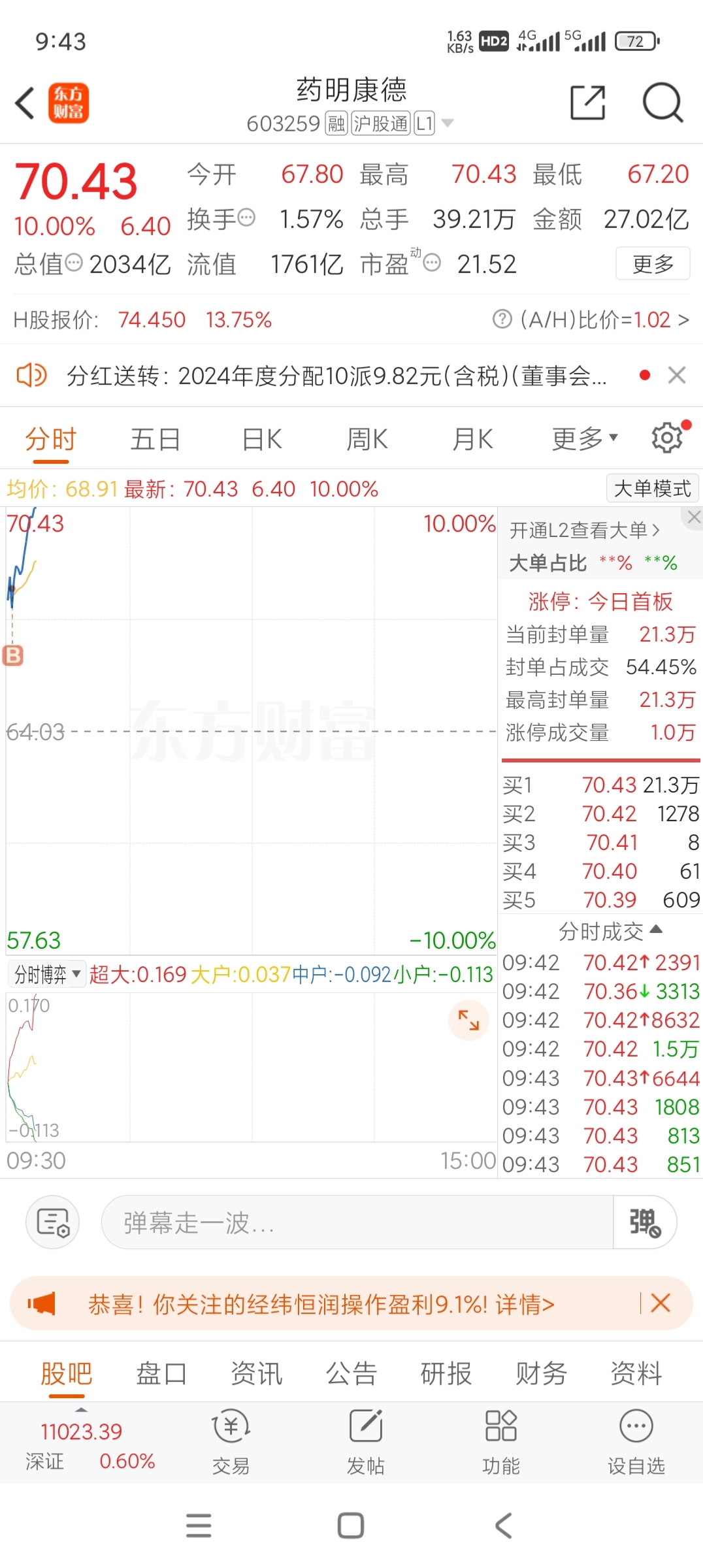 $药明康德(SH603259)$ 今早进价不错,买买买开盘就涨涨涨涨最后涨到停