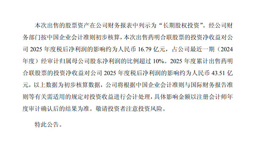 603259药明康德:出售证劵资产,今年增加利润高达43.5亿