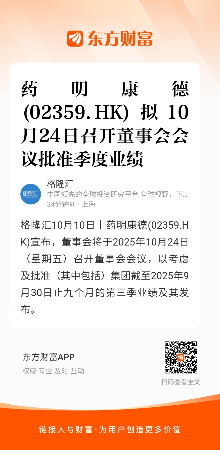$药明康德(SH603259)$ 10月24号才开会商议?也就是说下周没有业绩预增通知了