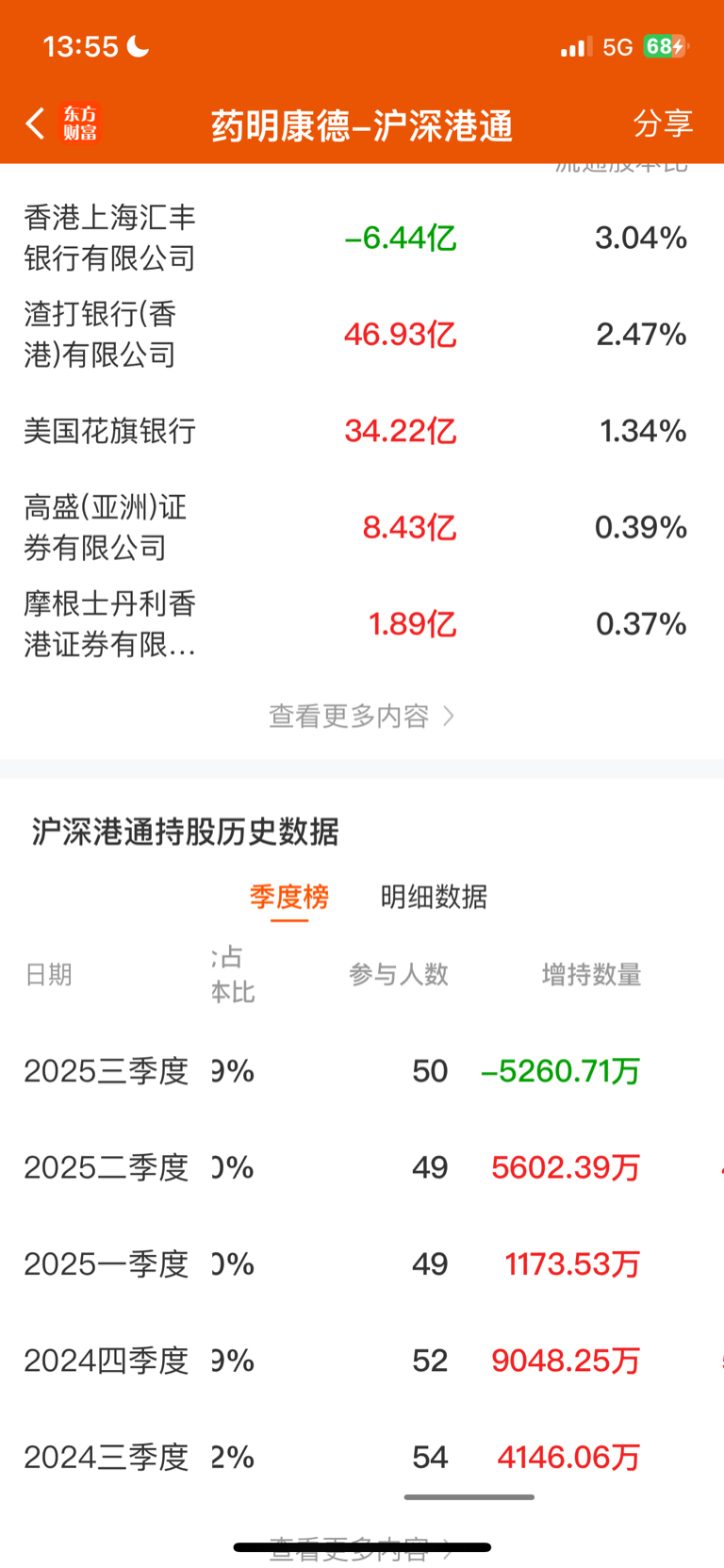 $药明康德(SH603259)$ 三季度北向资金跑了5000万股