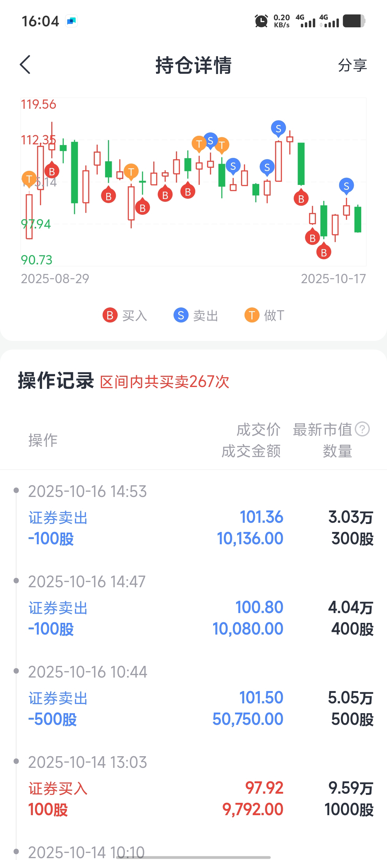16号101元多精准卖出,太幸运了!完美避开今天的下跌!成本下降到-69,期待9