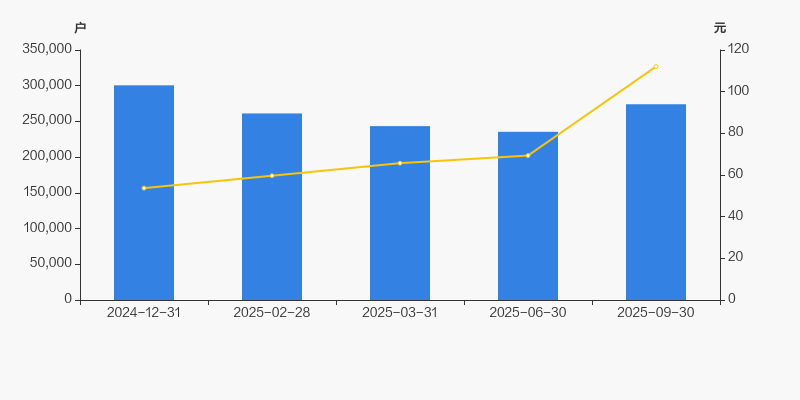 2024年12月31日至今,公司股东户数有所下降,区间跌幅为8.81%。2024年12月31日至2025年9月30日区间股价上涨108.64%。